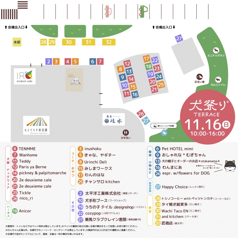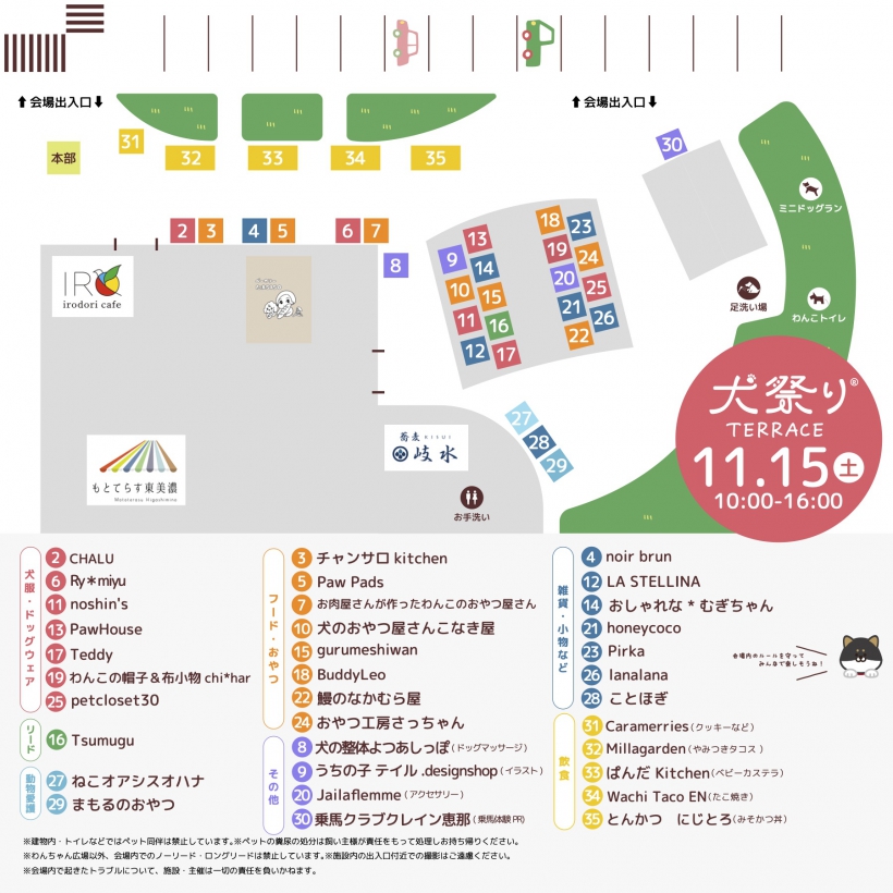 素敵なわんこグッズのお店や企業PRブース、キッチンカーが約30ブース出店