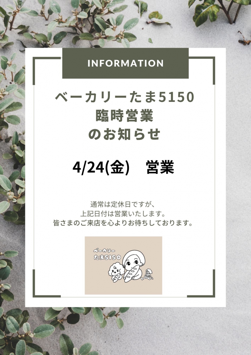 【ベーカリーたま5150】2026年4月24日臨時営業のお知らせ
